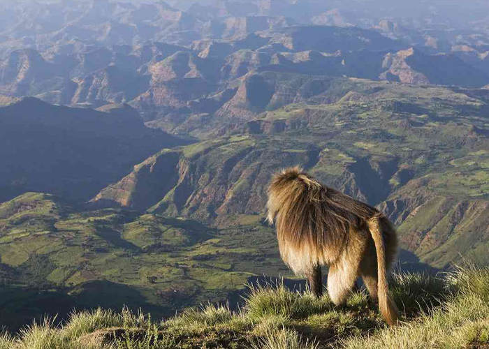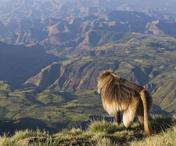 Along the way, encounter large troops of gelada baboons and enjoy panoramic mountain scenery.